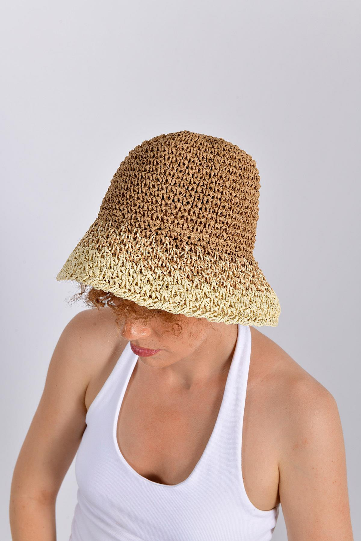This bucket hat, handwoven from natural raffia fibers, features a subtle ombre gradient that brings understated charm to any look. Lightweight and breathable, it offers all-day comfort without compromising on style—whether you're by the sea or in the city. Handcrafted in limited quantities.