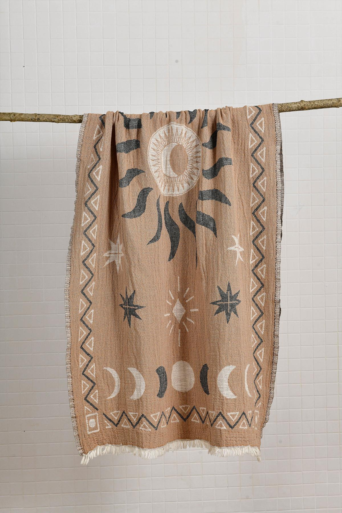 Infused with the energy of the sun and lunar phases, this triple-layered peshtemal brings serenity and grounded elegance through its grey-brown palette. Made of 100% cotton, it's soft, absorbent, and perfect for beach days or urban lounging. Pairs effortlessly with its matching kimono.