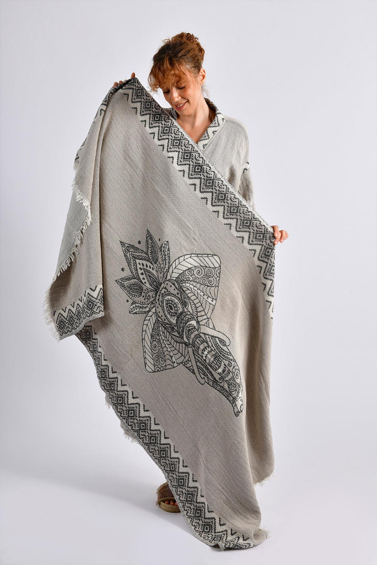 A calm, nature-inspired motif meets timeless grey tones for everyday elegance.