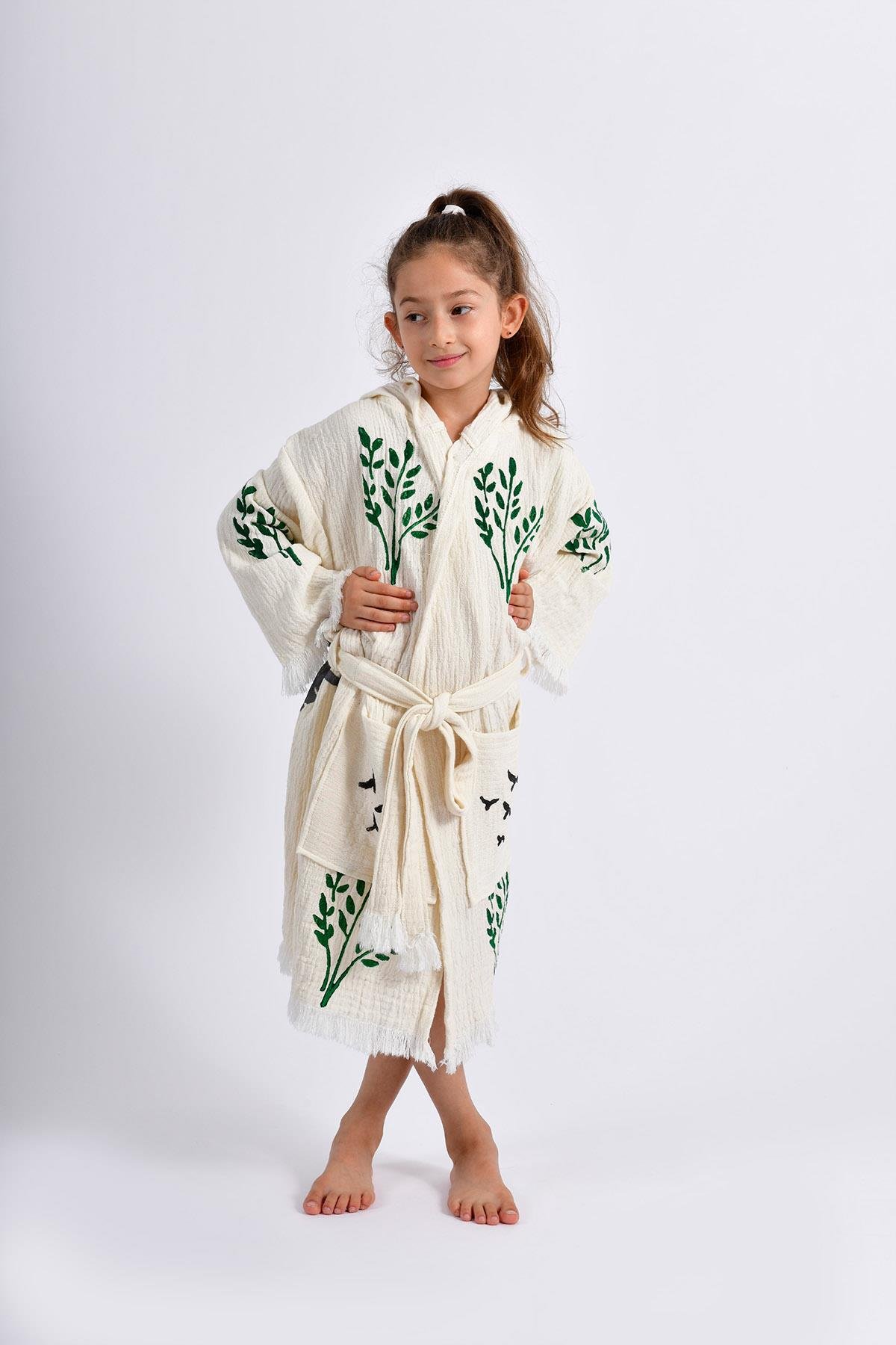 This kids kimono is designed for children aged 4 to 10. The relaxed fit and waist belt provide comfort and adaptability across different ages.
